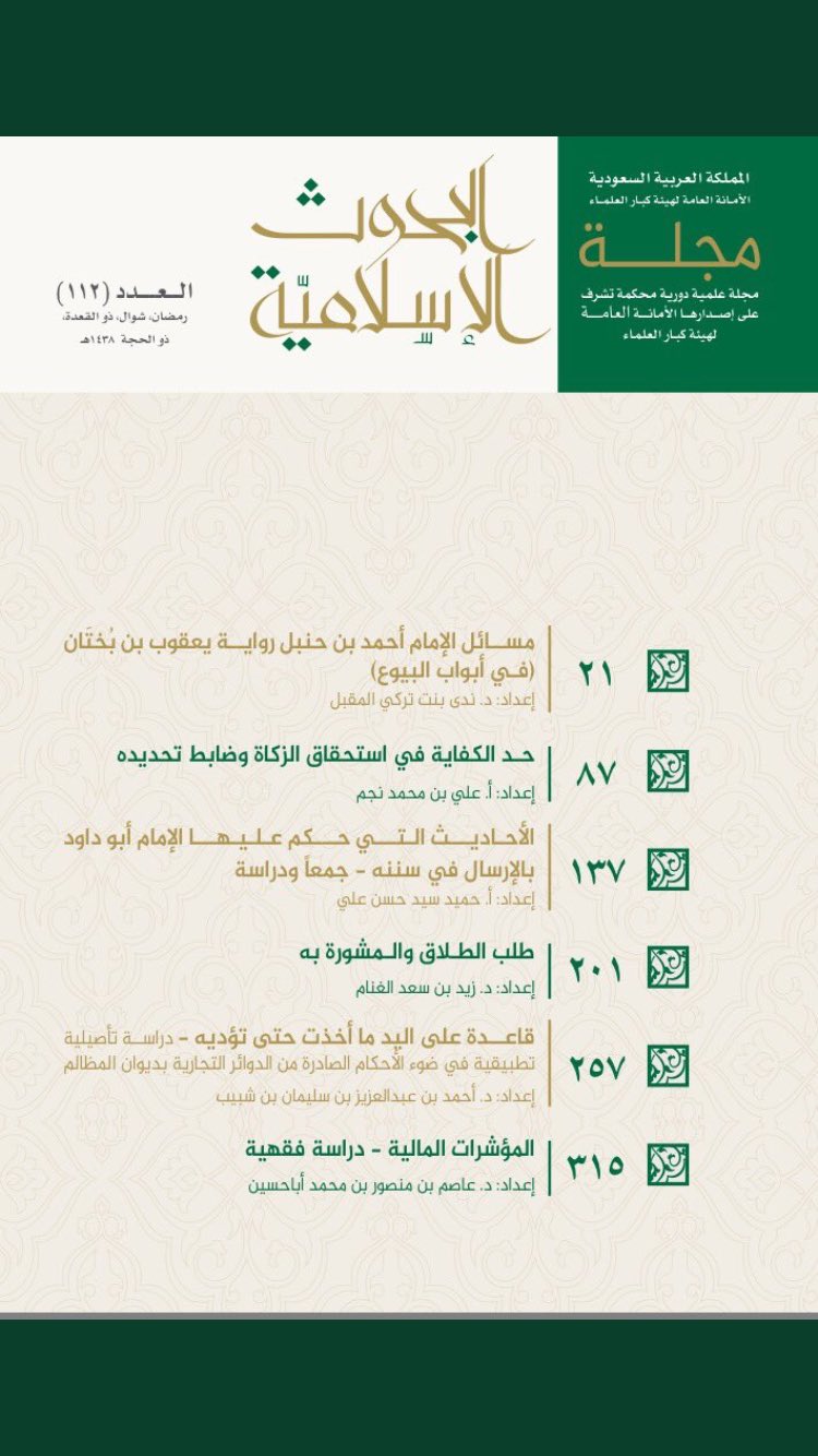 مجلة البحوث الإسلامية Auf Twitter سعيا من إدارة المجلة في